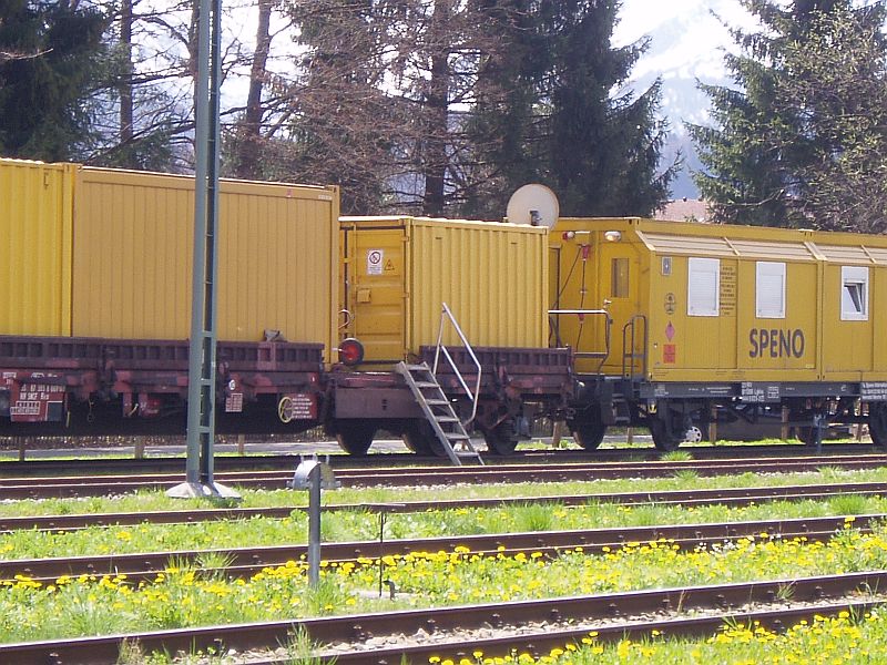 Ein Bauzug der Firma Spendo mit BR V100 2335 am 01.05.2006 in Oberstdorf